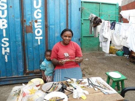 Monica Munyoki lives in Kenya. She is married with four children and hopes to be able to provide a university-level education for them. She owns a business making jewelry at Dandora in Nairobi. She's been in business for nine years and is using her loan to buy beads for making bracelets and necklaces and grow her business.